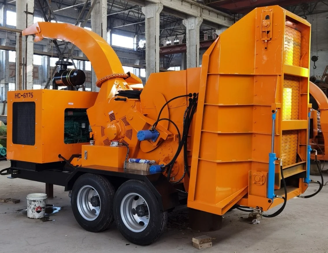 Máquina chipeadora industrial de máxima potencia, impulsada por un motor Diésel de 203 HP (potencia real) con un alto régimen de RPM (1.600 RPM). Es el modelo ideal para grandes faenas, municipalidades y empresas forestales. La capacidad máxima de chipeo es de hasta 22 pulgadas (aproximadamente 56 cm) de diámetro. La principal característica de este modelo ‘XS’ es su Banda Transportadora retráctil que facilita la carga y optimiza la alimentación de troncos. Posee un sistema de alimentación hidráulico e inteligente, rodillo de corte de 750 mm de diámetro con 8 cuchillos, y una capacidad de producción de 15 a 20 metros cúbicos por hora (m³/h), lo que equivale a 8.000 a 9.000 kg/h. Está montada sobre un doble eje con neumáticos y es remolcable. Su peso en seco es de aproximadamente 3.950 kg.