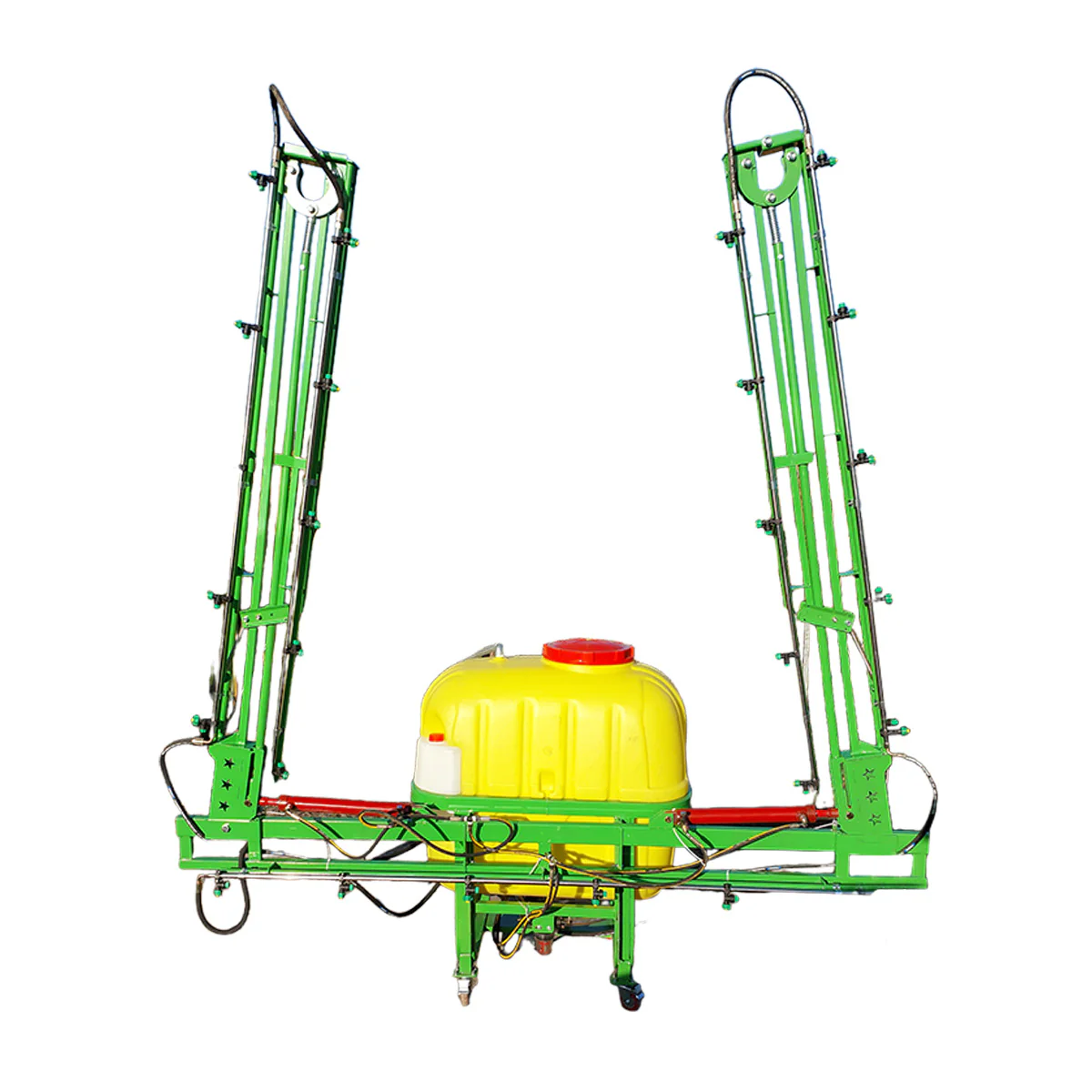 El fumigador es un pulverizador de barra hidráulica, de utilidad que se suspende en tres puntos de la parte posterior del tractor, con altura ajustable y la barra de pulverización plegable.