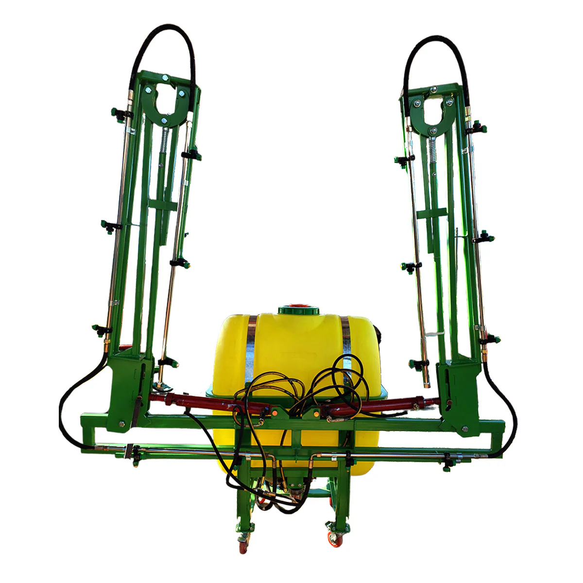 El fumigador es un pulverizador de barra hidráulica, de utilidad que se suspende en tres puntos de la parte posterior del tractor, con altura ajustable y la barra de pulverización plegable.