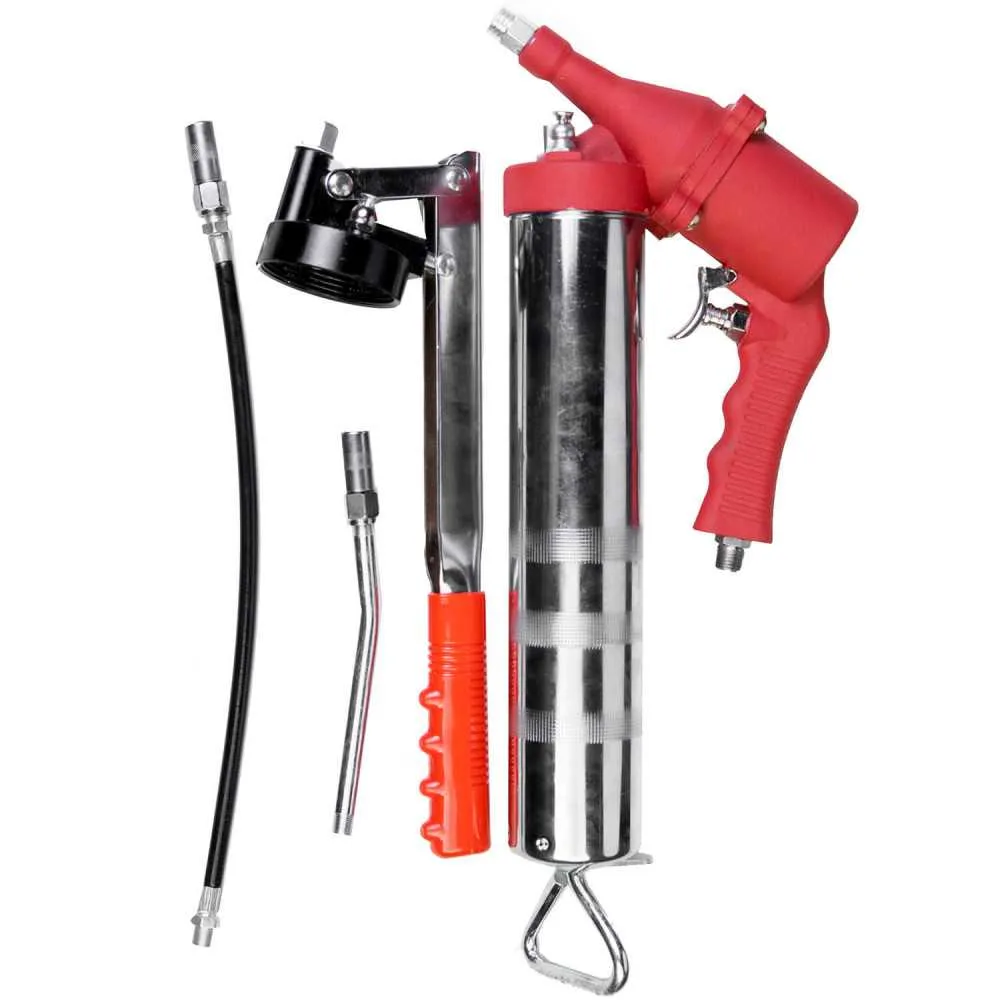 Grasera neumática con sistema de dispensador directo. Se conecta a un compresor de aire estándar para un engrase rápido y preciso. Incluye manguera de alta presión de 9″ y accesorios. Ideal para talleres y maquinaria.